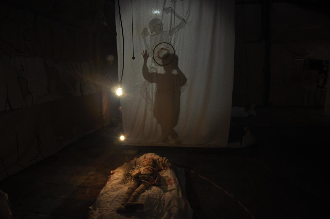 Beetje bij beetje installeert er zich een choreografie tussen onze lichamen, de textiele tableaus en de geluidsband.